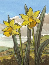 "Petite Daffodil" Ink and Watercolour on Arches, 9 x 12 cm