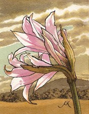 "Naked Lady (Belladonna Lily)" Ink and Watercolour on Arches, 9 x 12 cm