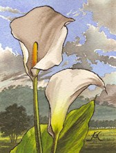 "Arum Lily" Ink and Watercolour on Arches, 9 x 12 cm