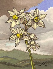 "Narcissus" Ink and Watercolour on Arches, 9 x 12 cm