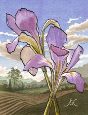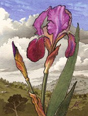 "Algerian Iris" Ink and Watercolour on Arches, 9 x 12 cm