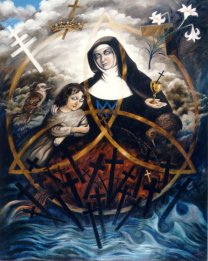 Her life, her work, her spirit and her music make her the ideal patron saint of women who write, compose, sing, perform, paint, draw, heal, philosophise, or study the earth or stars. The example of her spiritual leadership challenges us to consider Sophia, the Principle of Wisdom.